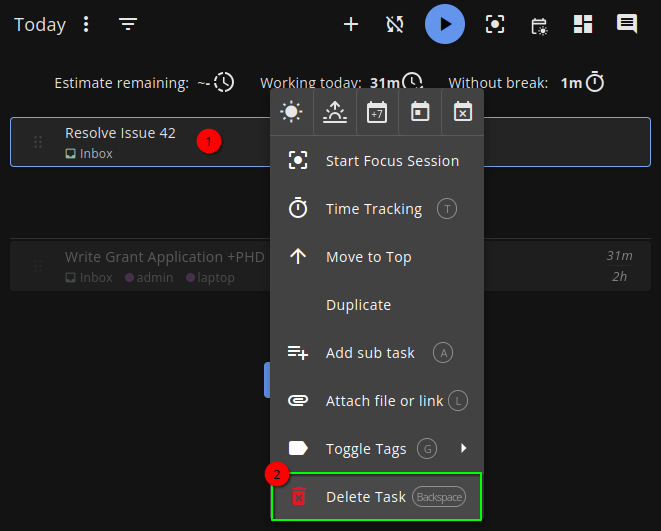 That's it! Super Productivity is still undergoing rapid development and supports a wide variety of working styles. With flexibility comes complexity... so focus on the basics of adding and managing tasks and learning to work with the time tracker for now. There are many options and ways to configure the app to accommodate you when that time comes.