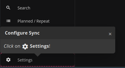 The Web App is limited to your browser on a single computer at first. Later on if you find that Super Productivity works well for you it is very likely you will want to configure "Syncing". Even if you only use a single computer, using "Sync" will ensure that all your data is saved reliably. We can ignore "Sync Settings" for now.